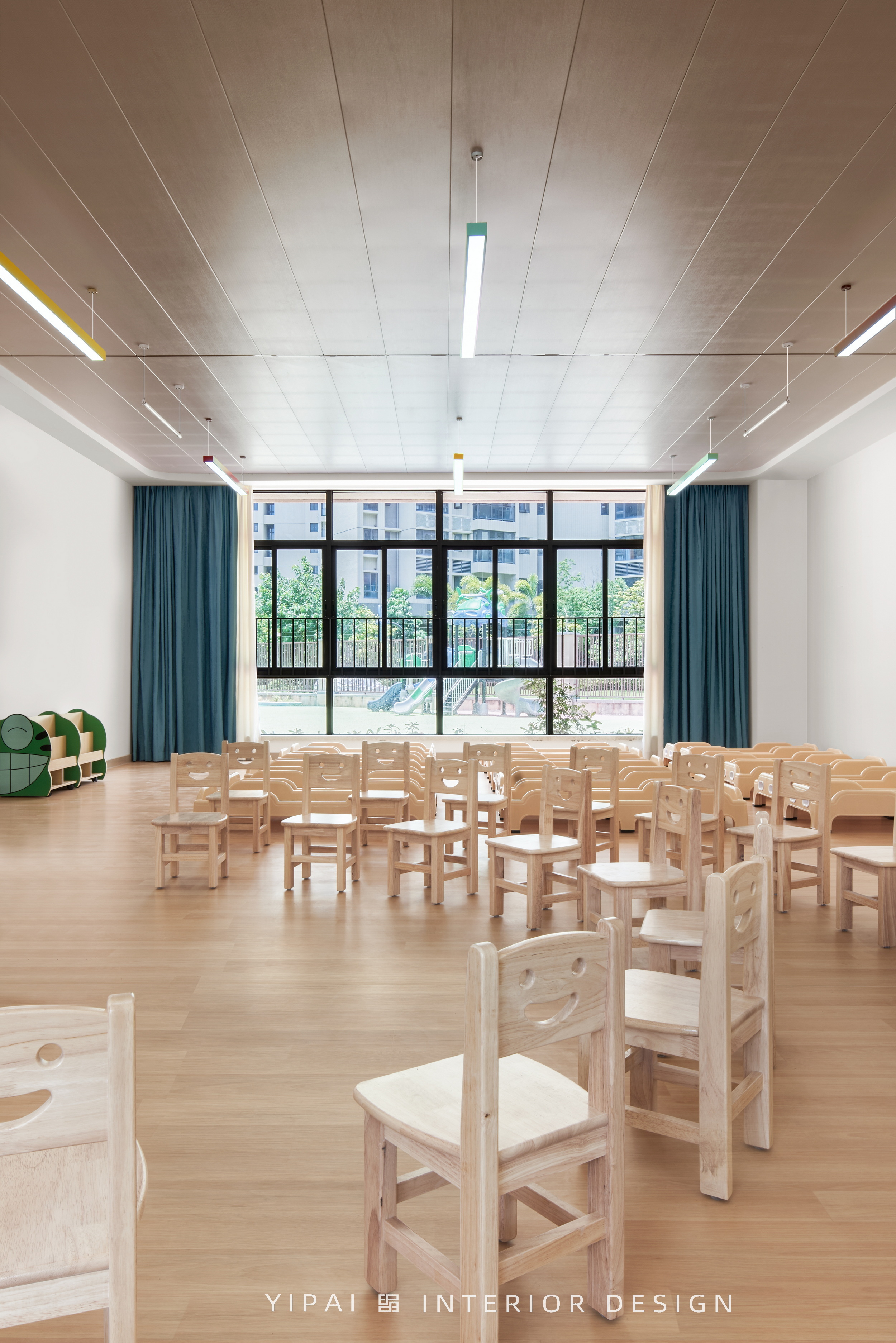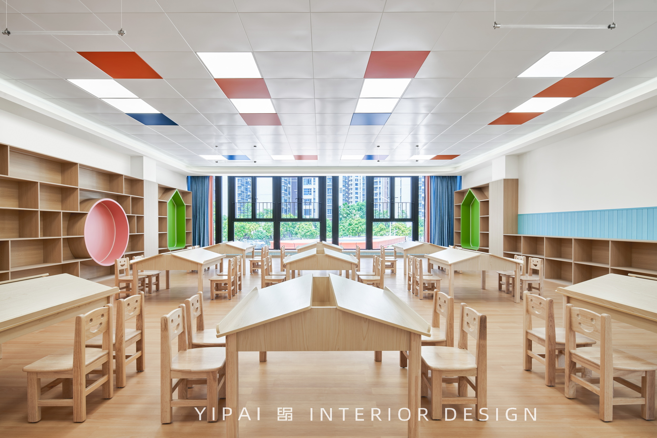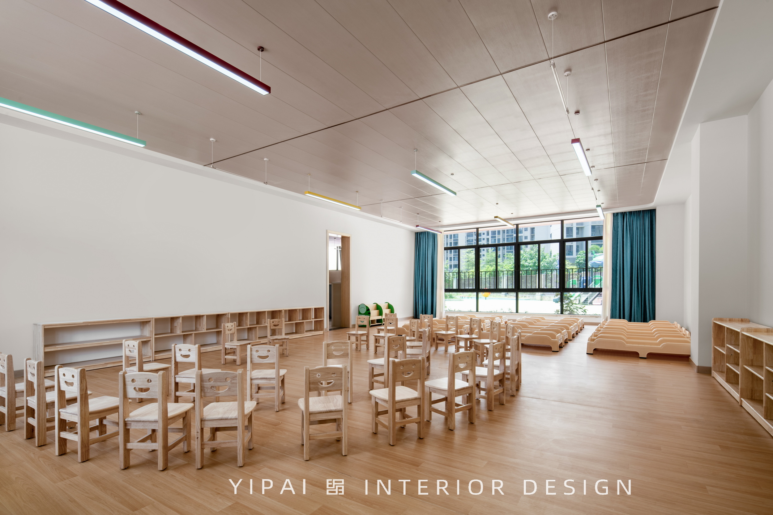 同時,這種布局也在街角形成開闊的城市關(guān)系,讓幼兒園成為城市背景中的一抹亮色。