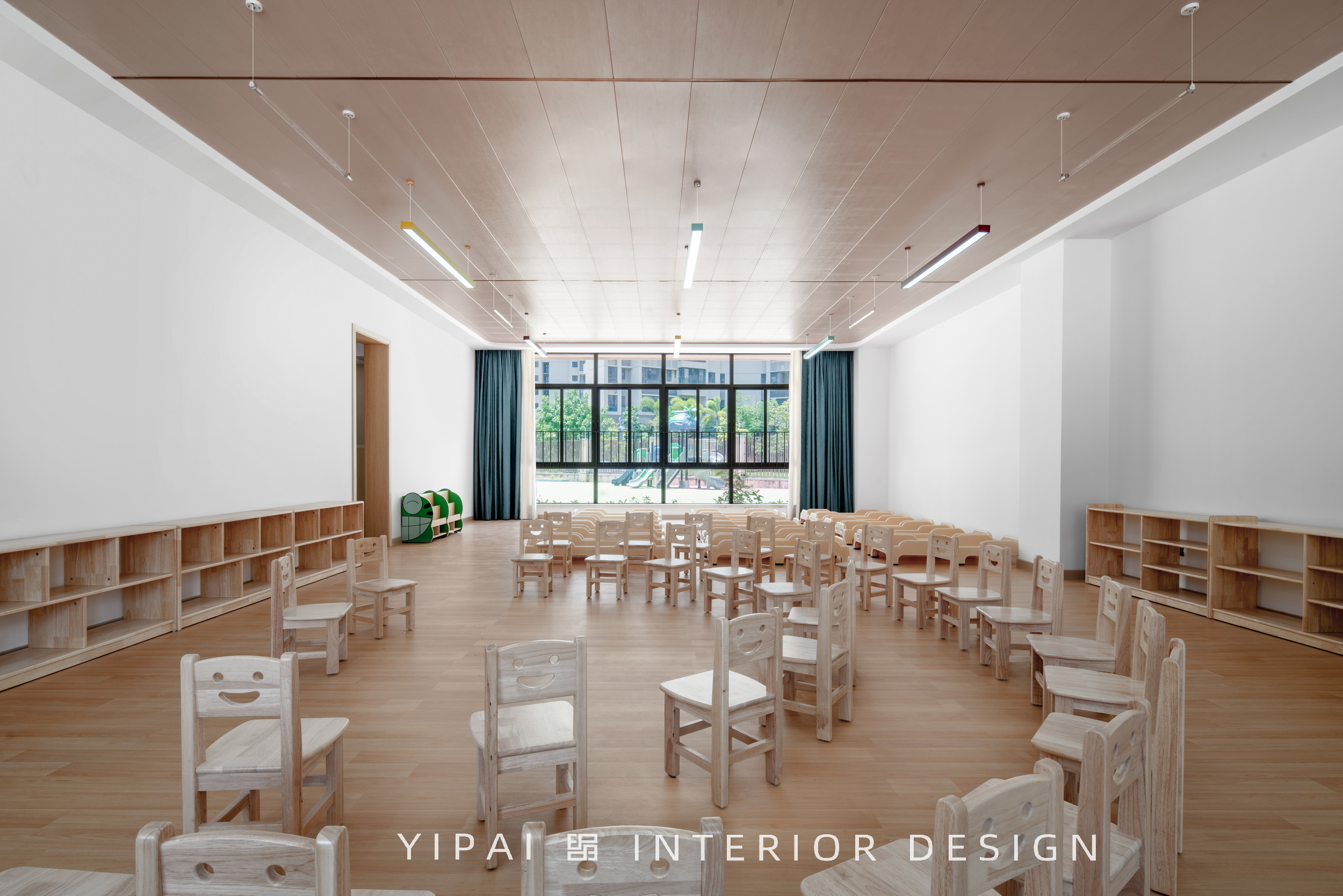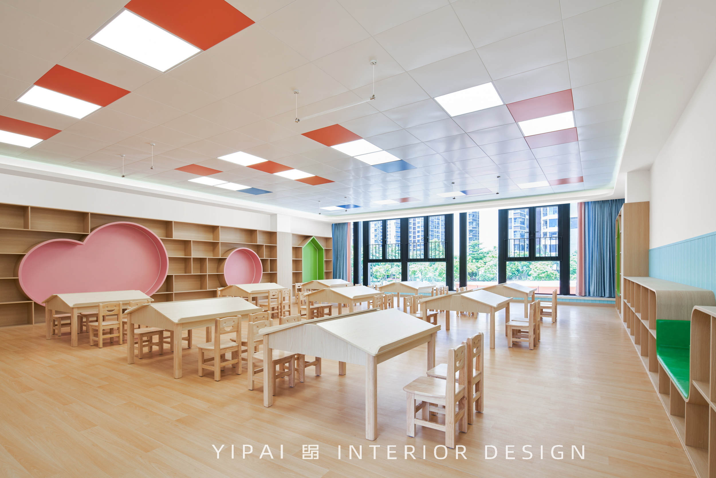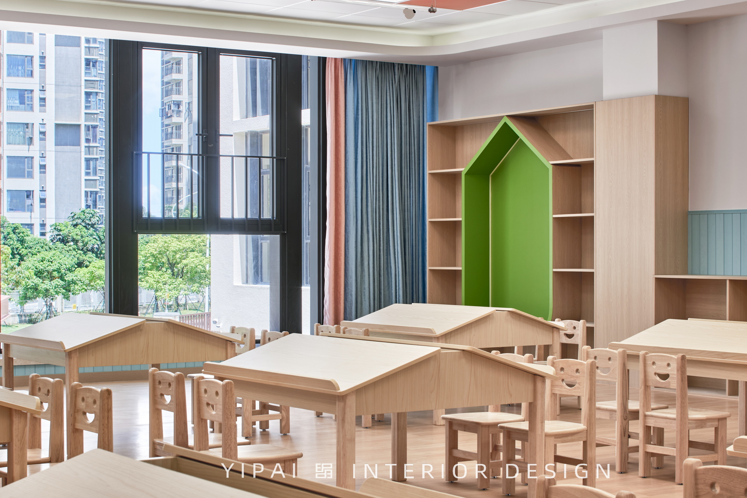 同時,這種布局也在街角形成開闊的城市關(guān)系,讓幼兒園成為城市背景中的一抹亮色。