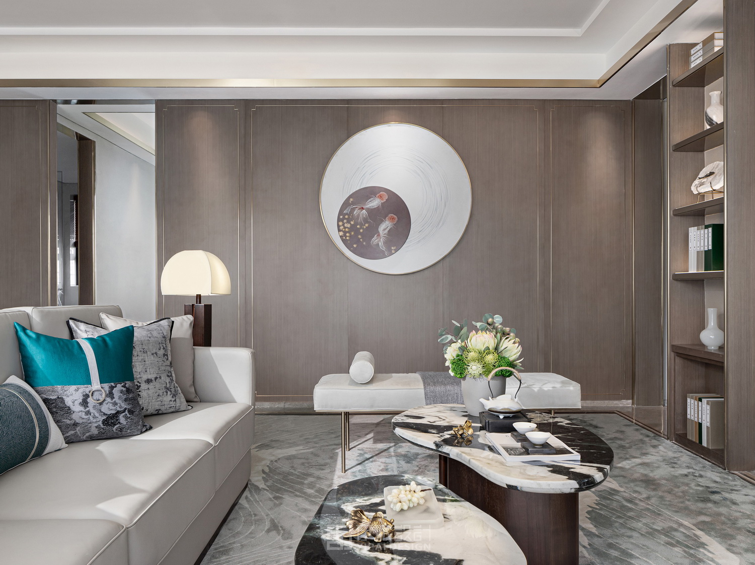 本案戶(hù)型為創(chuàng)新小高層,軟裝定位為現(xiàn)代東方雅奢風(fēng)格。硬裝干凈素雅,低調(diào)簡(jiǎn)約奢華的硬裝氛圍配合著干凈利落的沉穩(wěn)的灰調(diào),略帶東方韻味將優(yōu)雅的姿態(tài)完美呈現(xiàn)。室內(nèi)軟裝設(shè)計(jì)則是從這樣的設(shè)計(jì)藝術(shù)提煉出“中式雅奢”風(fēng)格意境中,創(chuàng)造了更加不可多得的韻味。從樣板房空間設(shè)計(jì)的整體畫(huà)面而言,更有內(nèi)在高雅而柔美的堅(jiān)韌與品位。