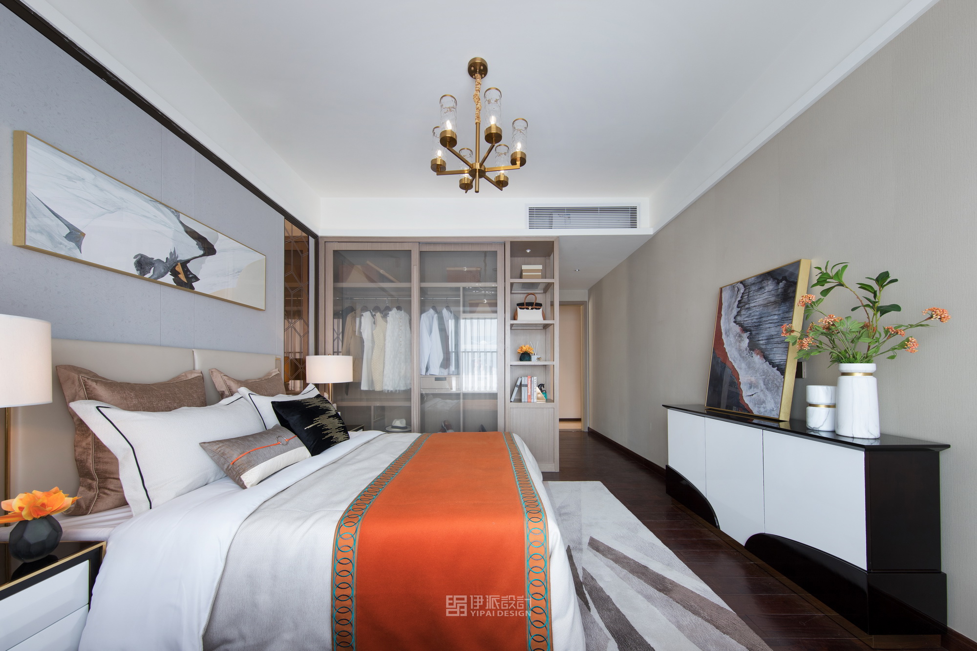 本案軟裝設計工程針對現(xiàn)代空間的美學思考,將上世紀的雕像與現(xiàn)代藝術,融合出獨具一格充滿西方氣息的藝術空間,神秘感縈繞其中,將“愛馬仕橙”作為設計核心,以港式輕奢的格調來定義空間的精神氣質,演繹品質高貴生活。